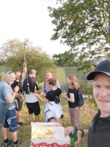 In kürzester Zeit erreichte die erste Gruppe das Chalet Carolein. Bei einem kühlen Bier warteten sie auf die Ankunft der anderen Gruppen. Anschließend genossen wir ein leckeres Abendessen vom Grill, begleitet von bunten Salaten. Bis spät in die Nacht wurde geschlemmt und angestossen, bevor sich ein Grossteil der Gruppe noch auf den Weg nach Hallau machte, um das 150-jährige Jubiläum des STV Hallau zu feiern.