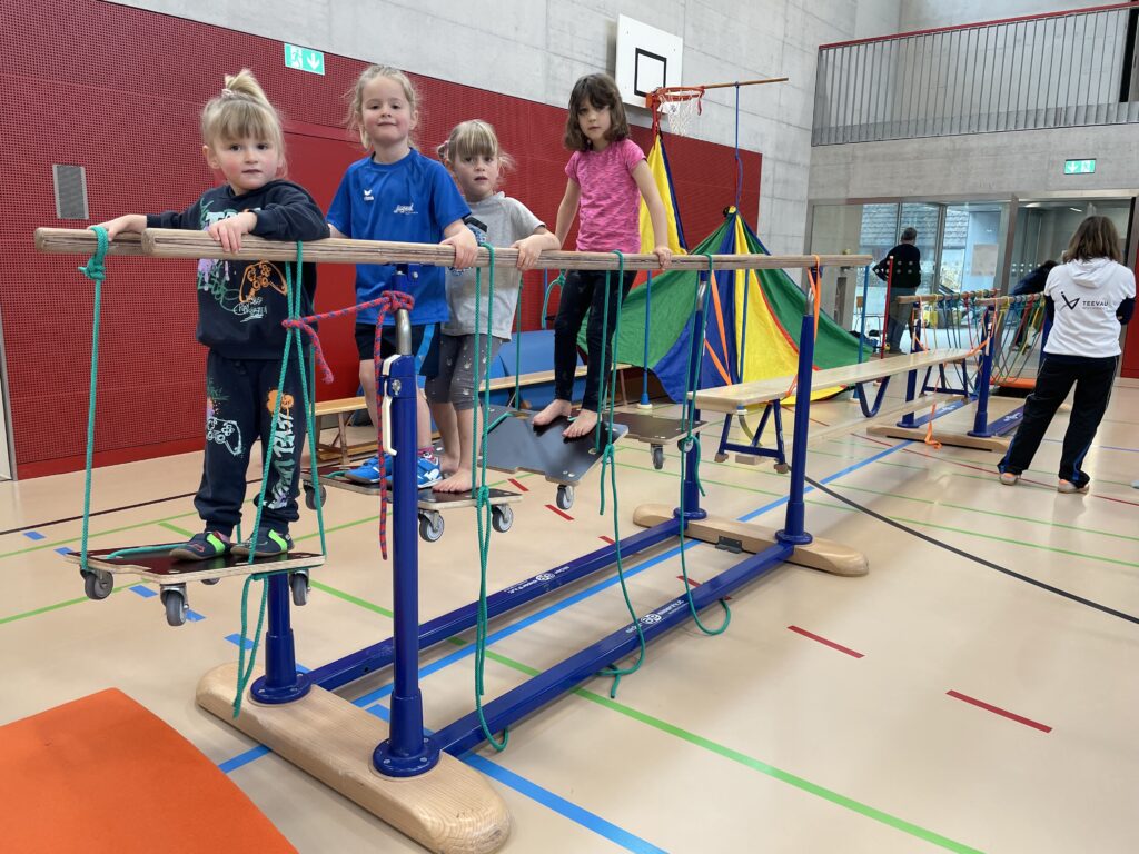 Gegen 100 bewegungsfreudige Kinder waren am Sonntag, 15. März 2026 in der Turnhalle Wilchingen anzutreffen. Der Teevau organisierte von 10.00 bis 14.00 Uhr für alle Kinder bis zur 4. Klasse wieder eine Turnwelt.